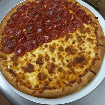 Supreme: Red base, hamburger, sausage, mushroom, onion, pepper & pepperoni $14.99 - $22.99